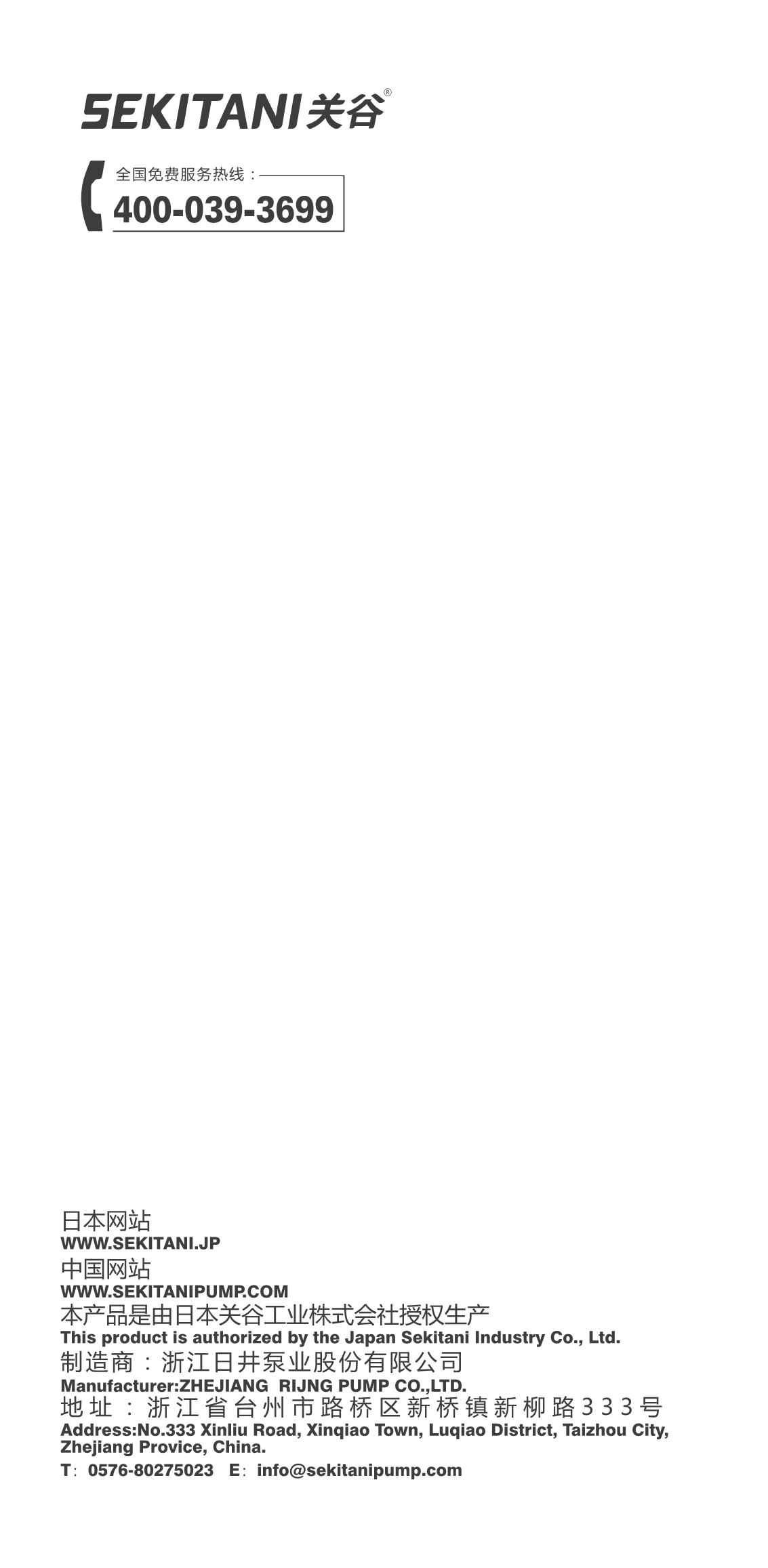 Copyright SEKITANI INDUSTRY CO., LTD